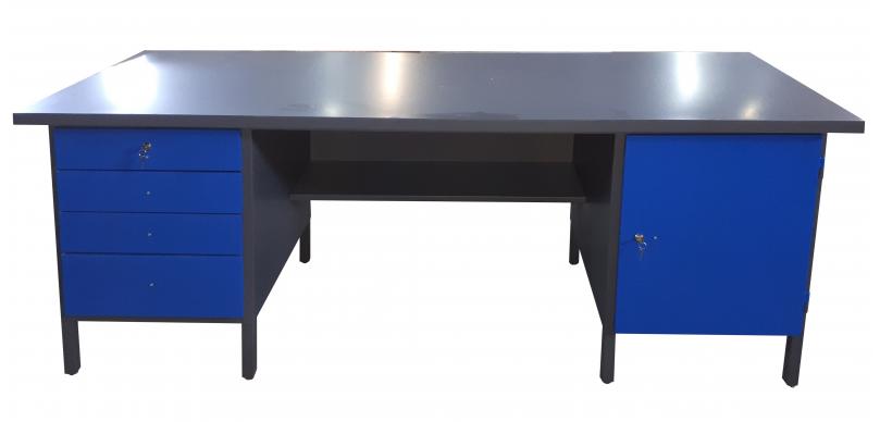 Благодаря такой конструкции столешница выдерживает высокие равномернораспределенные нагрузки (до 3200 кг), является удобной рабочей поверхностью и позволяет устанавливать тиски на любой стороне, что способствует оптимальной организации рабочего места с учетом специфики производства.