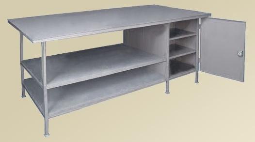 Верстак ВСМ-04 оборудован с обеих сторон тумбами для размещения в них инструмента и других принадлежностей, запираемые дверками с индивидуальным замком.