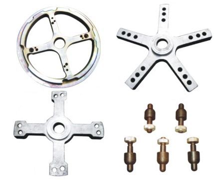 Комплект адаптеров для центровки грузовых колес за крепежные отверстия в диске. Состоит из 4-х и 5-лучевых адаптеров типа "звезда", фланца и крепежных штифтов.
