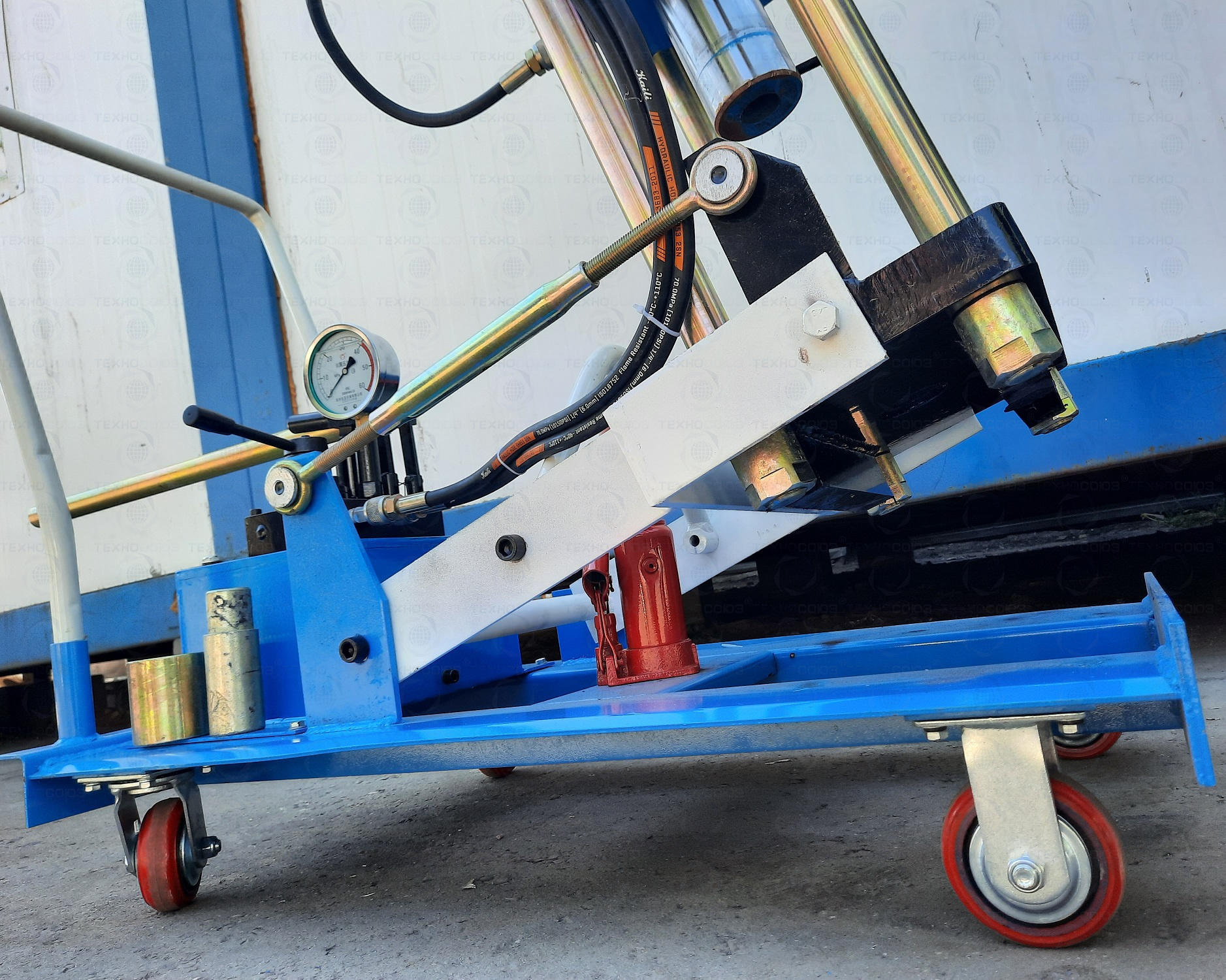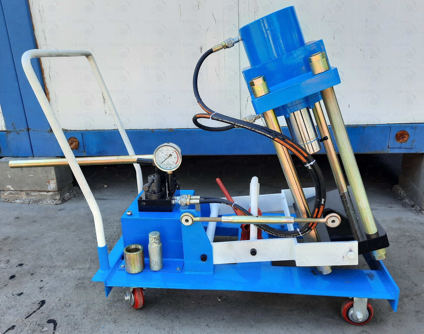 Мобильный. Позволяет работать под разными углами 1 человеку. Сокращает время ремонта. Для выпрессовки шкворней из поворотной цапфы. Для коммерческих и грузовых авто отечественного и импортного производства: MAN, MERSEDES, SCANIA, VOLVO, Корейские и Китайские автомобили, а также трактора, погрузчики, спецтехника. Ручной гидравлический привод. Рабочее окно 400x320 мм. Усилие 150 тонн. Можно использовать при выездных работах. Применяется для выпрессовки подшипников, валов, втулок, сайлентблоков.