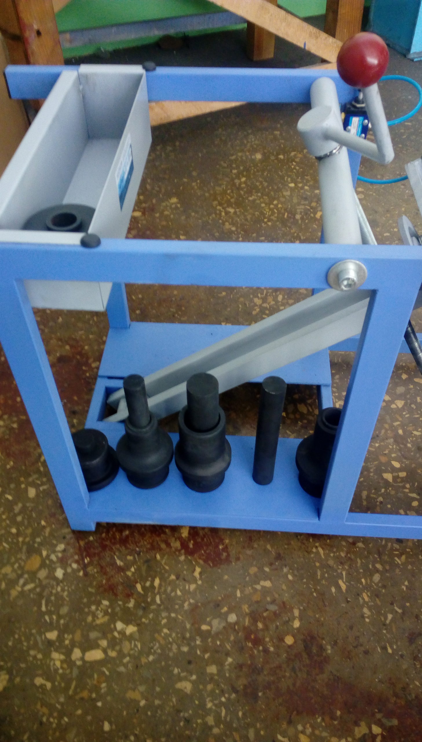 Комплектация выпрессовщика ВШ70-200 включает в себя не только саму установку, но и стационарный ручной гидравлический насос с РВД, а также набор оправок (3 шт.) и пуансонов, что делает его готовым к эксплуатации сразу после покупки.
