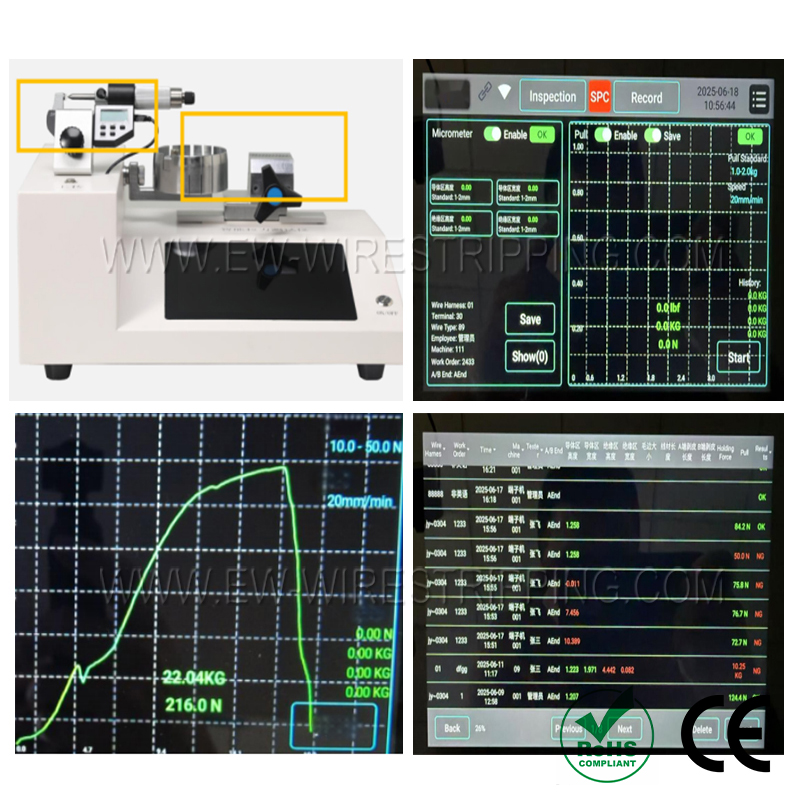 ● Габариты внешнего вида клеммы и усилие отрыва можно измерять одновременно на одной станции.