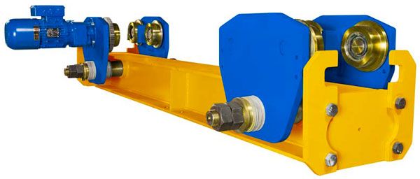 Концевая балка подвесного типа является составной частью мостового крана и представляет собой стальную балку определенной длины, в которой используются ходовые тележки, подвешиваемые к подкрановой балке двутаврового типа. Одна из тележек подвесной концевой балки имеет электропривод для перемещения балки вдоль пролета. При необходимости концевые балки могут комплектоваться тормозом на передвижение, механизмом плавного пуска/остановки и другими дополнительными опциями. Стандартный комплект поставки включает в себя: 2 несущих балки с отбойниками, 4 тележки передвижения, 2 мотор-редуктора, техническая документация на изделие. Стандартные параметры концевых балок подвесного мостового крана: