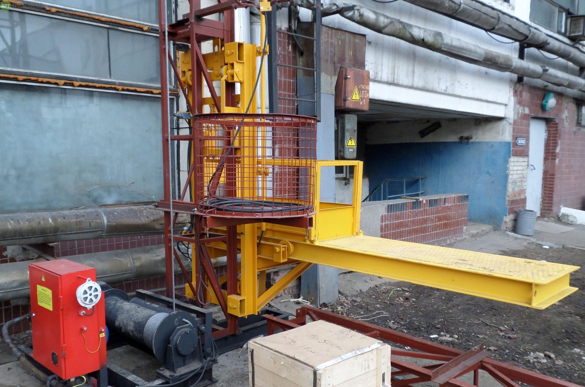 Одномачтовые строительные подъемники грузоподъемностью 1000 килограмм широко применяются на различных промышленных объектах для подъема, опускания на перекрытия стройматериалов при выполнении отделочных работ или ремонта внутреннего помещения, для проведения монтажных работ вдоль фасада здания. Подъемник представляет собой мачту, которая собирается из отдельных секций длиной 2 метра, что позволяет выдвигать ее на высоту до 100 метров. Груз поднимают при помощи грузовой каретки, а затем подается в проем на выдвижной платформе. Для обеспечения безопасности мачтового подъемника в нем устанавливают ограничитель грузоподъемности, ставят защитные борта и монтируют автоматический тормоз. В случае обрыва троса вследствие аварийной ситуации в мачтовом подъемнике предусмотрены ловители. Наличие и тип ограждения, расположение грузоподъемных механизмов, количество промежуточных остановок и другие дополнительные опции согласовываются при оформлении заказа. Стандартные параметры работы одномачтового грузового подъемника: