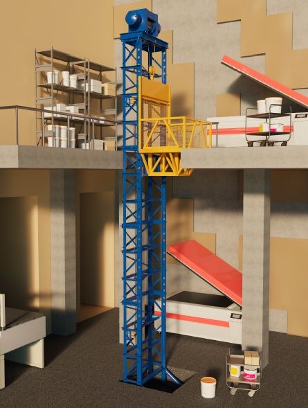 Одномачтовые строительные подъемники грузоподъемностью 500/750 килограмм широко применяются на различных промышленных объектах для подъема, опускания на перекрытия стройматериалов при выполнении отделочных работ или ремонта внутреннего помещения, для проведения монтажных работ вдоль фасада здания. Подъемник представляет собой мачту, которая собирается из отдельных секций длиной 2 метра, что позволяет выдвигать ее на высоту до 100 метров. Груз поднимают при помощи грузовой каретки, а затем подается в проем на выдвижной платформе. Для обеспечения безопасности мачтового подъемника в нем устанавливают ограничитель грузоподъемности, ставят защитные борта и монтируют автоматический тормоз. В случае обрыва троса вследствие аварийной ситуации в мачтовом подъемнике предусмотрены ловители. Наличие и тип ограждения, расположение грузоподъемных механизмов, количество промежуточных остановок и другие дополнительные опции согласовываются при оформлении заказа. Стандартные параметры работы одномачтового грузового подъемника: