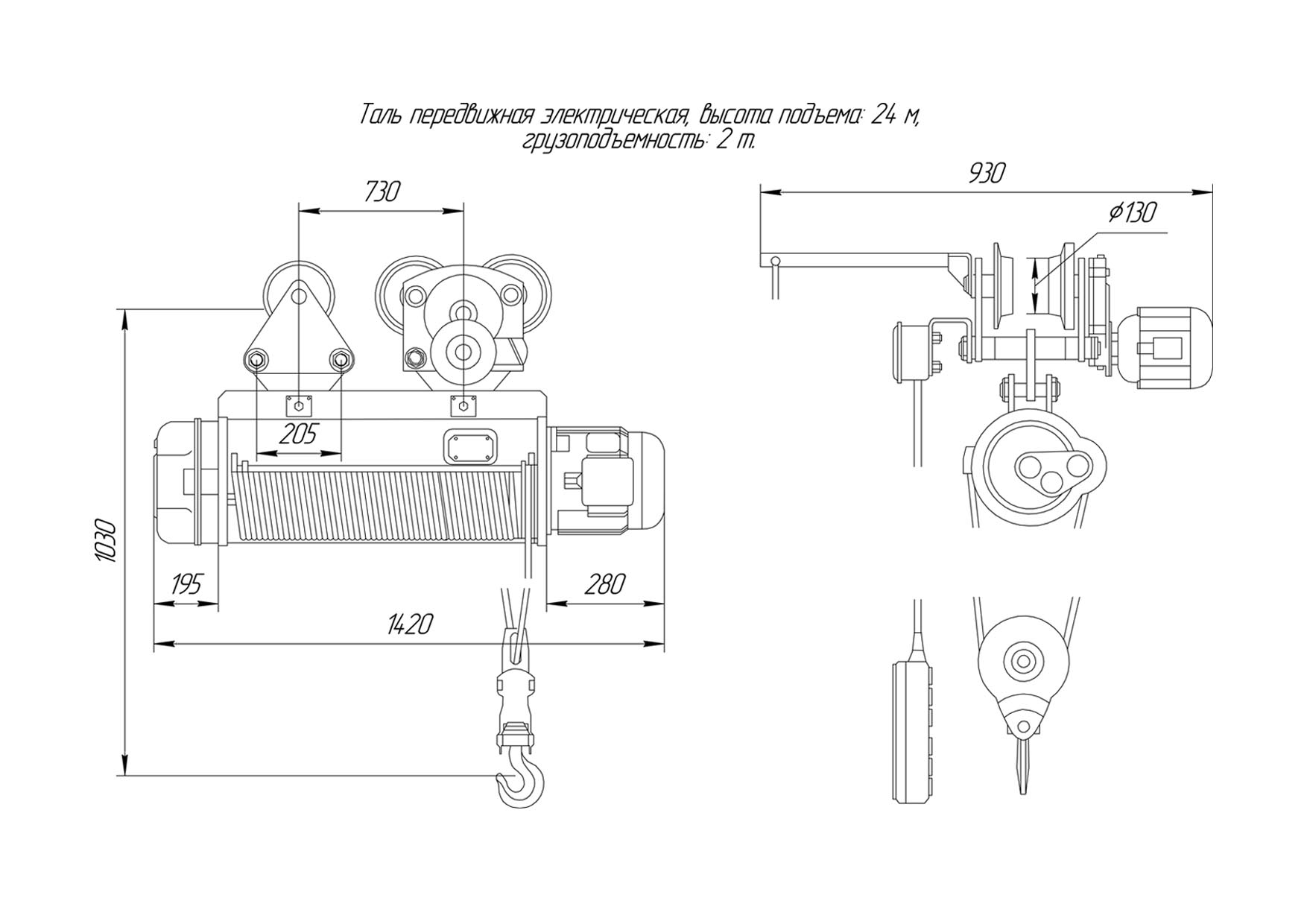 Передвижная электрическая канатная таль ТЭ 200 грузоподъемностью 2000кг оснащена кареткой передвижения с электроприводом. Таль предназначена для подъема, удержания и опускания различных грузов а также для горизонтального перемещения грузов вдоль монорельсового пути двутаврового профиля.
