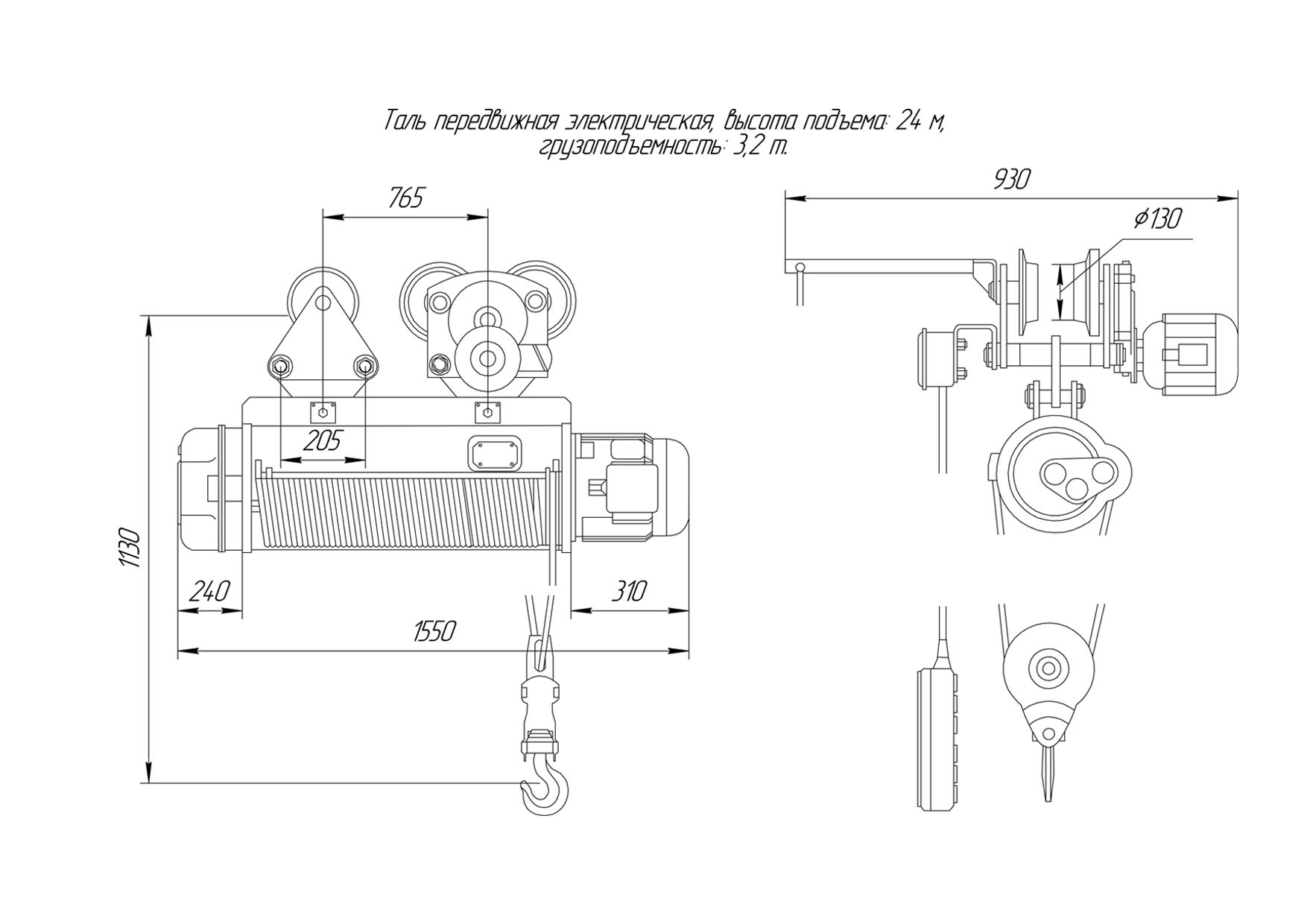 Передвижная электрическая канатная таль ТЭ 320 грузоподъемностью 3200кг оснащена кареткой передвижения с электроприводом. Таль предназначена для подъема, удержания и опускания различных грузов а также для горизонтального перемещения грузов вдоль монорельсового пути двутаврового профиля.