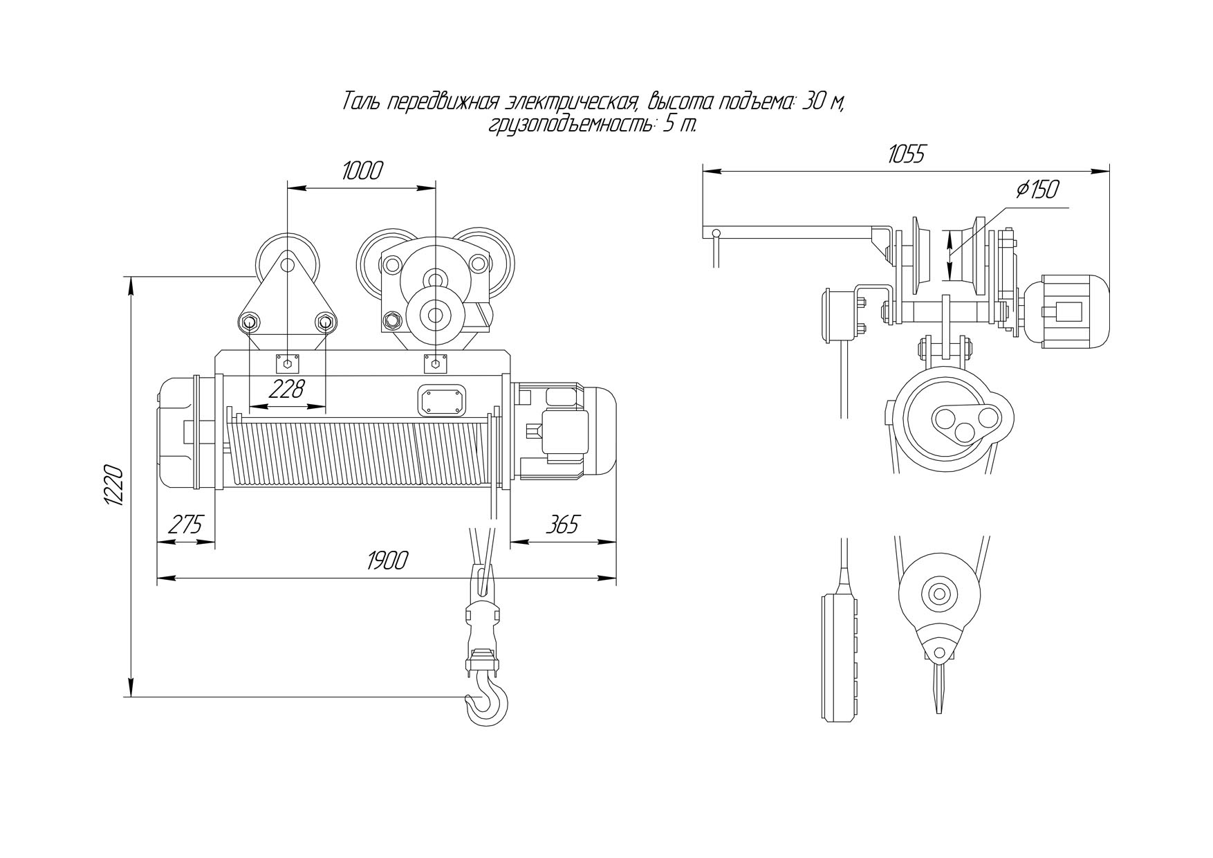 Передвижная электрическая канатная таль ТЭ 500 грузоподъемностью 5000кг оснащена кареткой передвижения с электроприводом. Таль предназначена для подъема, удержания и опускания различных грузов а также для горизонтального перемещения грузов вдоль монорельсового пути двутаврового профиля.