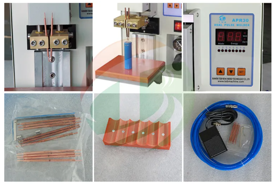 Этот пневматический аппарат для точечной сварки в основном используется для сварки цилиндрических аккумуляторных батарей 18650. Он может сваривать никелевые контакты толщиной от 0,02 до 0,2 мм с хорошим качеством сварки.