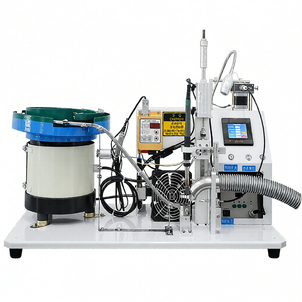 Эта полуавтоматическая паяльная машина специально разработана для точной пайки проводов к электронным компонентам. Оборудование оснащено встроенной системой подачи вибрационной чаши, которая автоматически подает электронные компоненты, в то время как операторы просто управляют позиционированием проволоки, позволяя машине завершить оставшуюся часть процесса пайки.