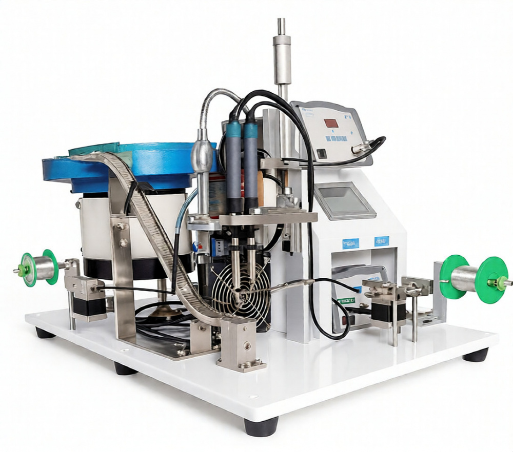 Эта полуавтоматическая паяльная машина специально разработана для точной пайки проводов к электронным компонентам. Оборудование оснащено встроенной системой подачи вибрационной чаши, которая автоматически подает электронные компоненты, в то время как операторы просто управляют позиционированием проволоки, позволяя машине завершить оставшуюся часть процесса пайки.