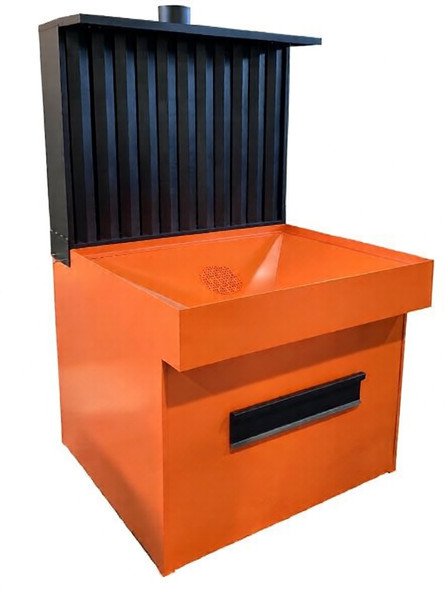 Удаление газовой смеси и пыли, образующихся в процессе зачистки, происходит через жалюзи, расположенные на задней вытяжной панели экрана, и съемную решетку на поверхности стола. Подключение стола к вытяжной системе помещения производится с помощью фланцев, расположенных на боковой стенке стола и верхней обшивке экрана.