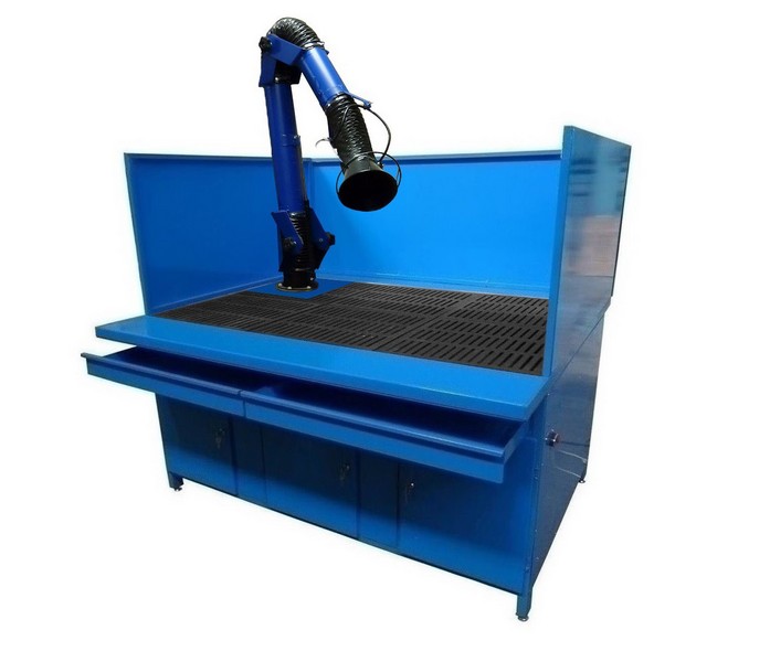 Наличие системы удаления сварочных газов при помощи поворотного вытяжного устройства (КВУ-100), диаметр 100/125/150мм. Регулируемые опоры. Порошково-полимерное покрытие (RAL5015)