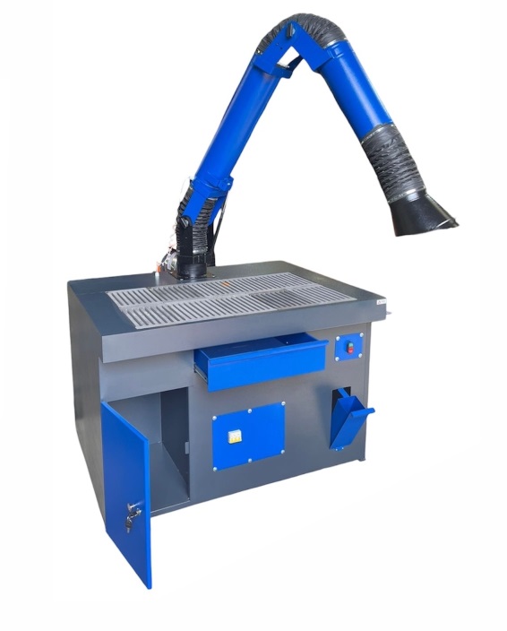Для удаления вредных веществ с поверхности стол сварщика СС-04-03 оборудован вытяжной вентиляционной системой со встроенным вентилятором, подъемно-поворотным вытяжным устройством (ПВУ), которое позволяет выполнять безопасные работы не только на поверхности стола сварщика, но и в радиусе 2,5 м вокруг него.