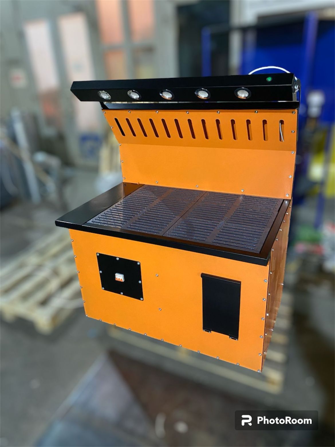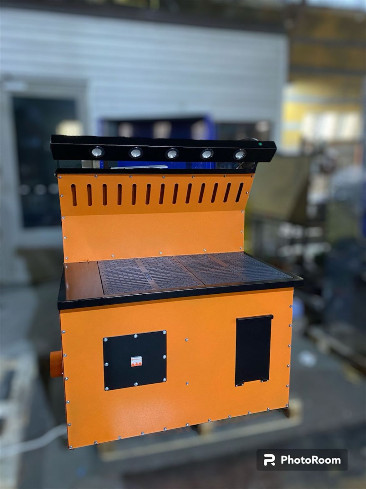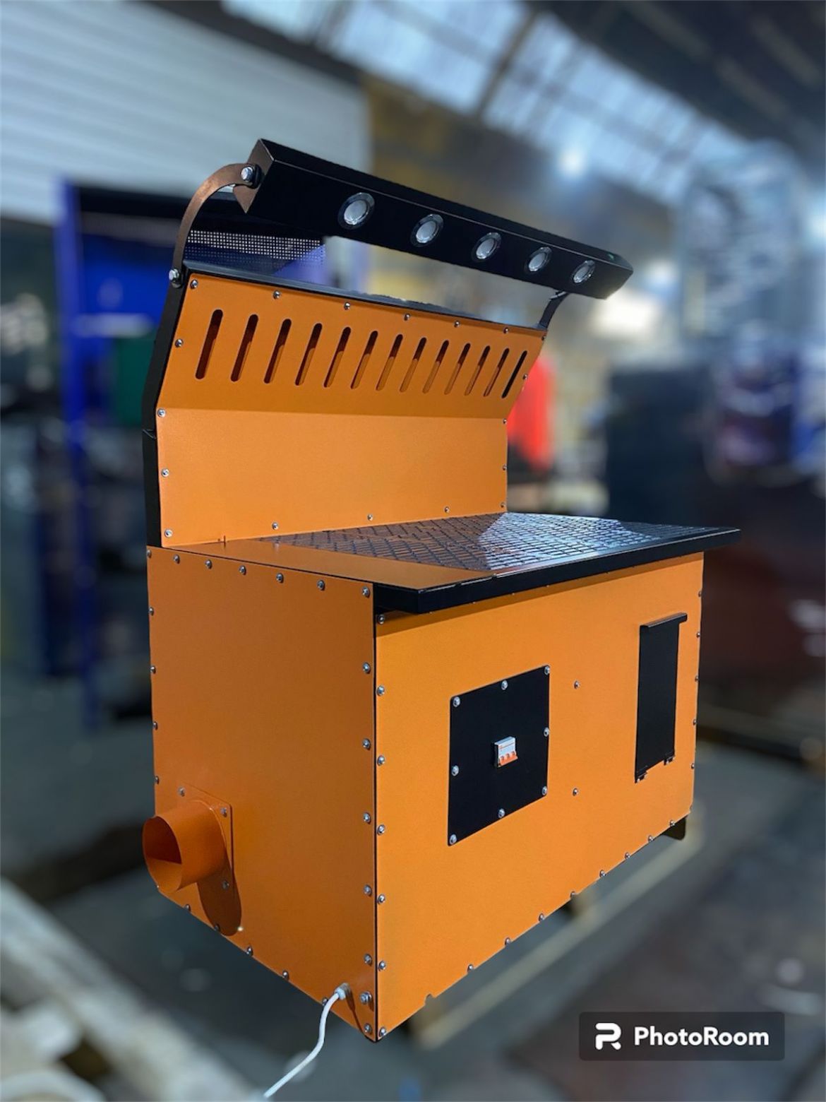 Соединение центробежного вентилятора с внешним воздуховодом осуществляется посредством гибкой вставки. Органы управления электрической частью стола сварщика расположены на его лицевой панели. Там же находится колчан для электродов.