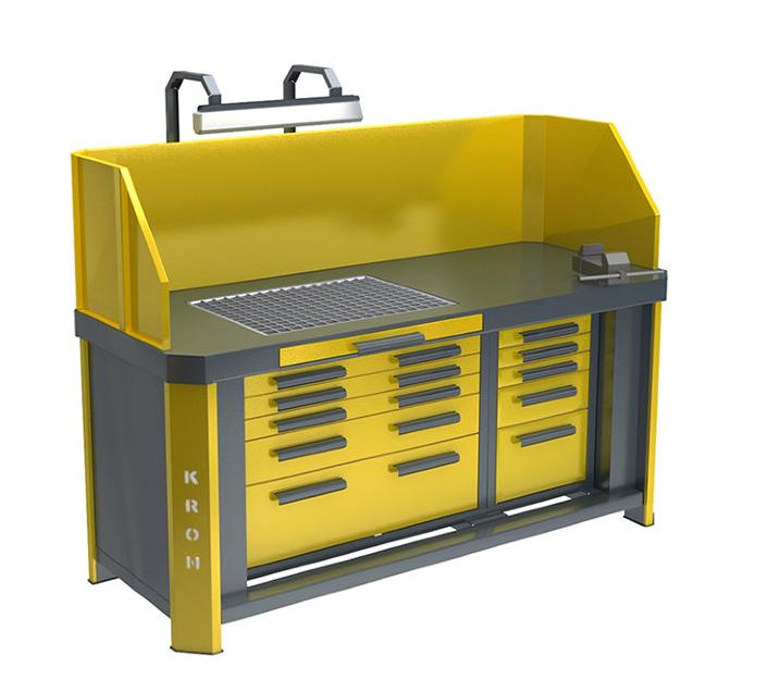 Все металлические элементы стола сварщика покрываются порошковой краской. В стандартном исполнении основной цвет – RAL 7012, цвет дополнительных элементов - RAL 1018.