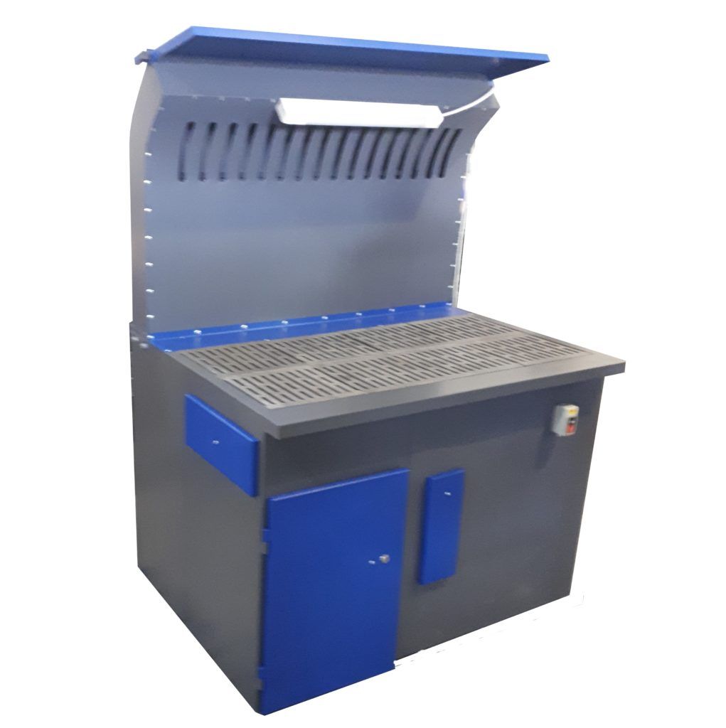 Через пазы между чугунными балками происходит также удаление шлака, огарков электродов и т.п. с рабочей поверхности стола сварщика в специальный короб, расположенный внутри поста.