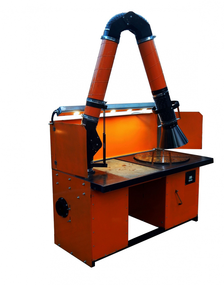 Отбор воздуха, загрязненного сварочным дымом и аэрозолями производится с помощью поворотно-вытяжного устройства, расположенного на рабочей поверхности стола. Использование поворотно-вытяжного устройства позволяет расширить функциональные возможности данного оборудования, обеспечивая локальную вытяжку как с рабочей поверхности стола, так и за его пределами.
