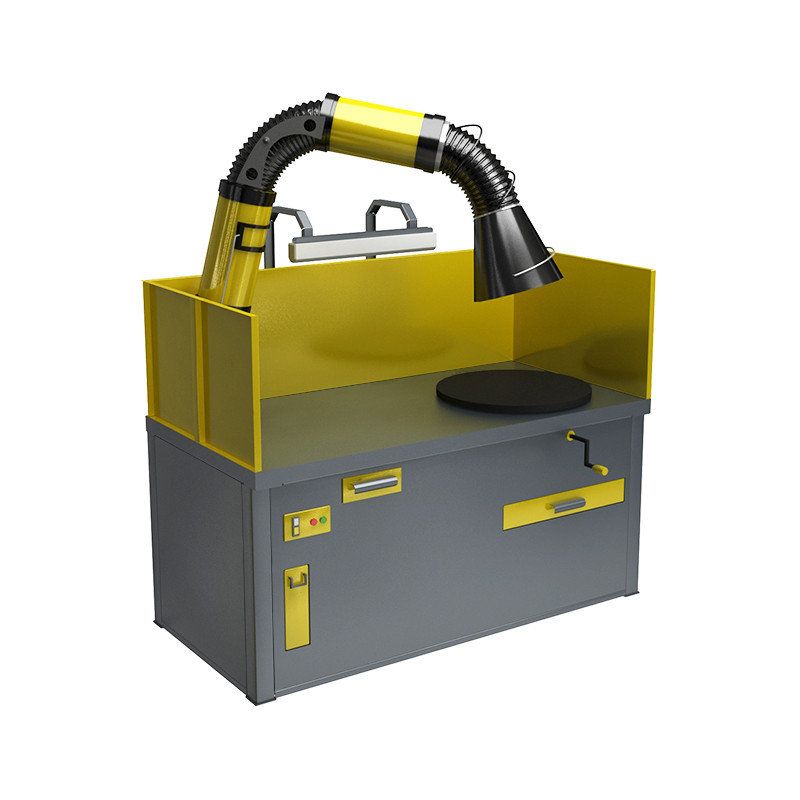 Удаление вредных веществ осуществляется с помощью подъемно-поворотного вытяжного устройства (ПВУ), установленного на боковой стенке стола. ПВУ поворачивается на 360 градусов вокруг своей оси, легко перемещается и фиксируется в нужном положении. Воздухоприемная воронка данного устройства вращается в нужную сторону на 110 градусов от оси в любой плоскости, снабжена подсветкой.