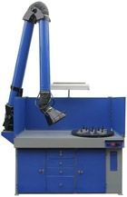 Удаление вредных веществ осуществляется с помощью поворотно-вытяжного устройства (ПВУ), установленного на боковой стенке стола. ПВУ поворачивается на 360 градусов вокруг своей оси, легко перемещается и фиксируется в нужном положении. Воздухоприемная воронка данного устройства вращается в нужную сторону на 110 градусов от оси в любой плоскости, снабжена подсветкой.