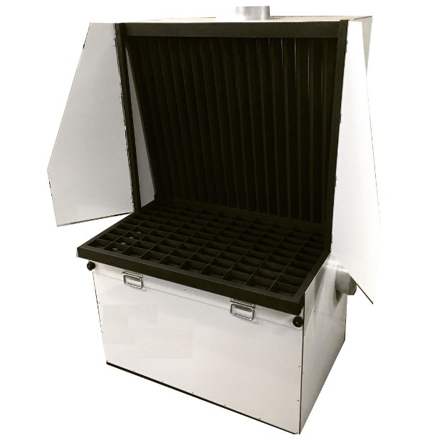 Вытяжная система надежно защищена от попадания искр. Раскалённые частицы металла и пыль оседают в выдвигаемом поддоне, при этом дым легко выводится через вытяжную систему. Стол можно подключить к такой системе с любой стороны.