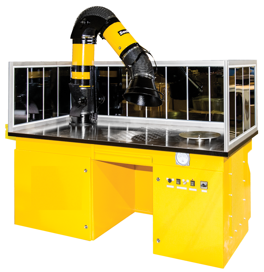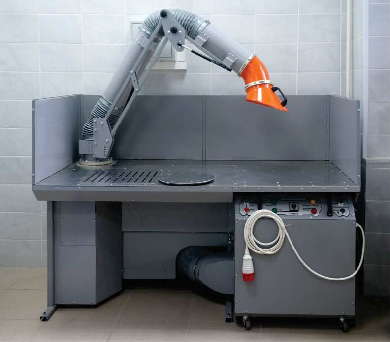 Для особо дымных процессов сварки стол оборудован вытяжным устройством увеличенного диаметра Ø200 мм и фильтровентиляционной установкой повышенной производительности — до 2000 м3/ч.