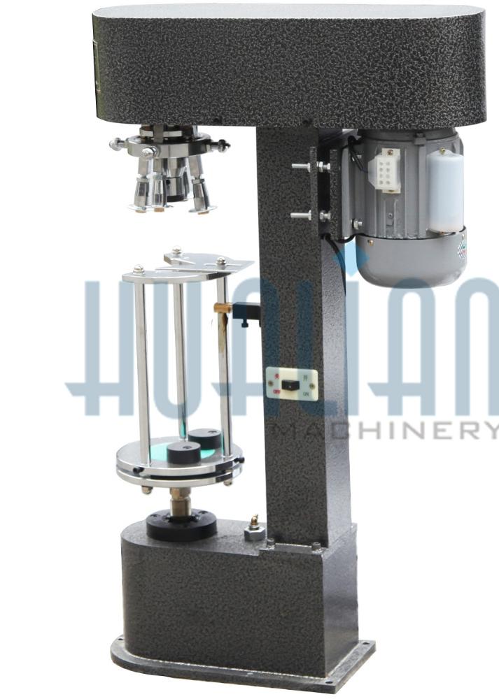 Полуавтоматический укупорщик бутылок для завинчивания пластиковой пробки на тару серии DK-50Z. Это простой и надежный аппарат с ручными регулировками по высоте бутылки, по диаметру крышки, по фиксации бутылки на площадке. Укупорщик предназначен для накручивания винтовой пластиковой пробки на горлышко. Цикл составляет 3-5 секунд. Данная укупорочная машина используется на производствах по розливу в пластиковую и стеклянную тару. В комплекте с поршневым дозатором образуют небольшую производственную линию.