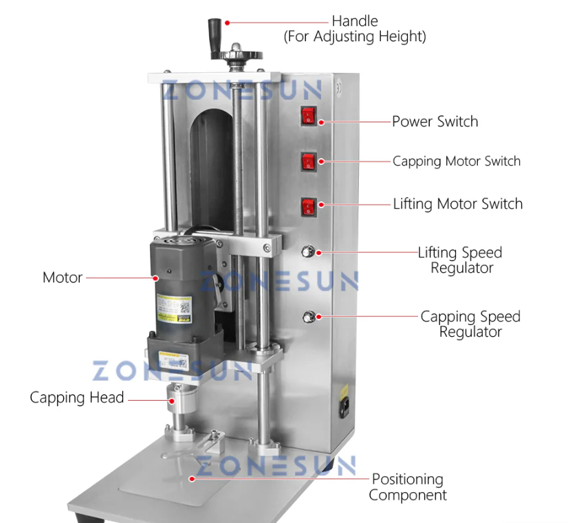 ZS-XGCC2 — это компактная полуавтоматическая укупорочная машина, предназначенная для точного и быстрого затягивания и ослабления винтовых крышек. Она поддерживает диаметры крышек от 20 до 50 мм (с возможностью регулировки до 100 мм) и высоту бутылок от 40 до 280 мм, что делает её идеальной для упаковки косметики, химикатов и продуктов питания. Эргономичный дизайн и стабильный контроль крутящего момента делают её идеальным решением для небольших и средних производственных линий, обеспечивая надежную работу при минимальных усилиях оператора.