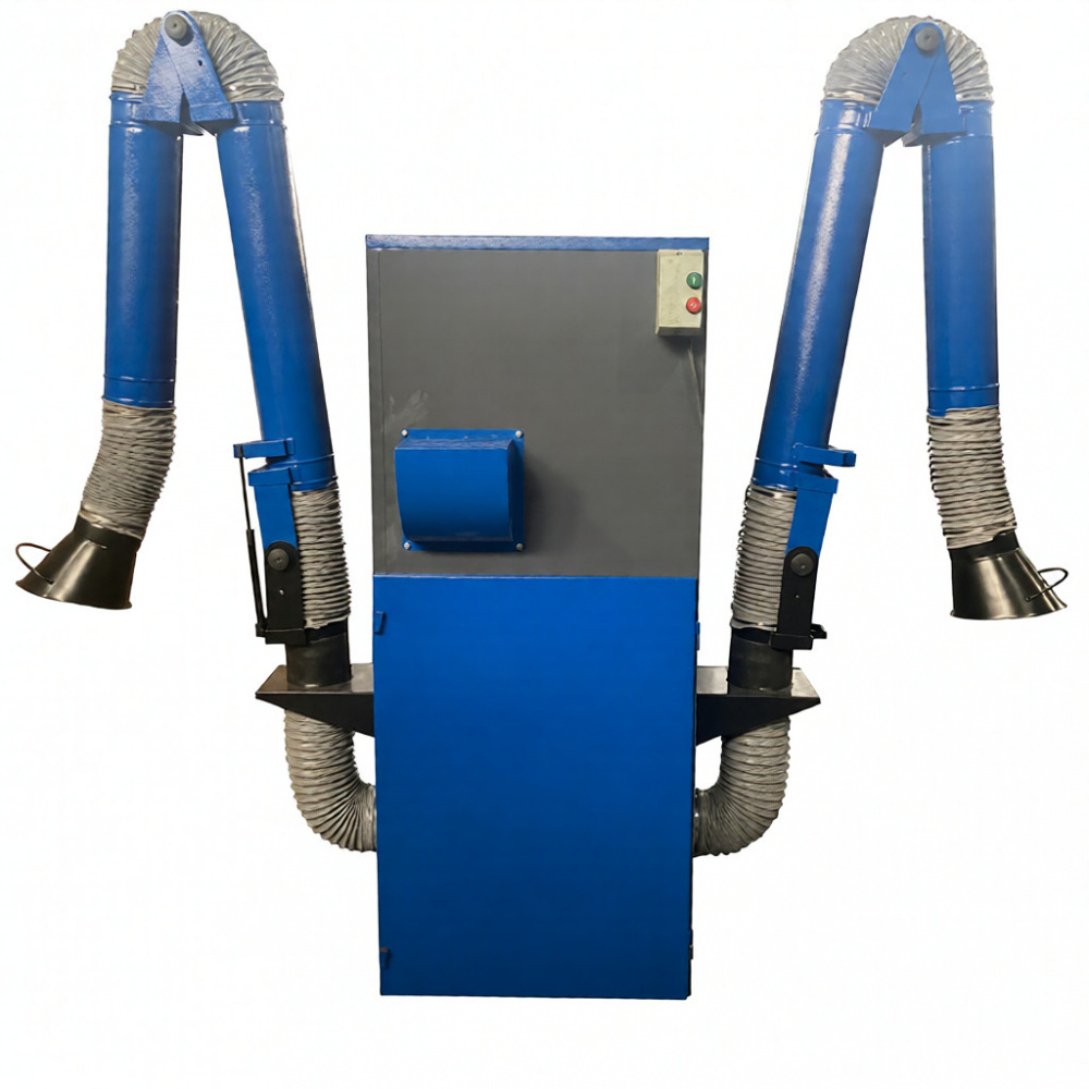 Установленное поворотно-вытяжное устройство позволяет производить забор сварочного аэрозоля и пыли из зоны проведения сварочных работ в радиусе 2,5 м от установки. ПВУ поворачивается на 360 градусов вокруг своей оси, легко перемещается и фиксируется в нужном положении. Воздухоприемная воронка данного устройства вращается в нужную сторону на 110 градусов от оси в любой плоскости.