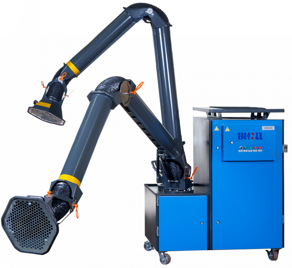 Передвижная вентиляционно-аспирационная установка модульного типа "КАМА 3000" (далее - ВАУ МТ "КАМА 3000") предназначена для очистки воздуха от различных механических примесей: сварочный аэрозоль, металлическая и абразивная пыль и прочее. Модель может комплектоваться одним вытяжным устройством диаметром 200 мм или двумя вытяжными устройствами диаметром 160 мм каждый, в зависимости от комплектации. В комплектации с двумя вытяжными устройствами ВАУ МТ "КАМА 3000" может использоваться в качестве основной вытяжки для двух сварочных постов.