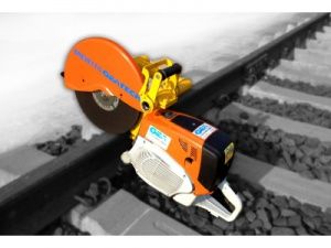 Рельсорезный станок с запатентованным креплением к рельсу, для резки высокопрочных рельсов.