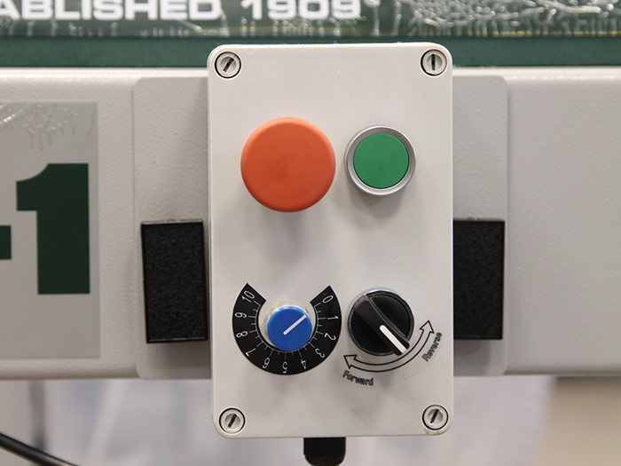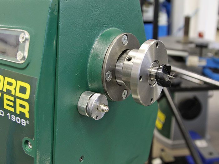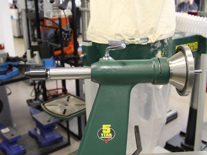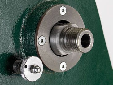 Передняя бабка легко поворачивается с помощью рукоятки с эксцентриковым зажимом. Можно задать угол в 0º, 30º и 90º;