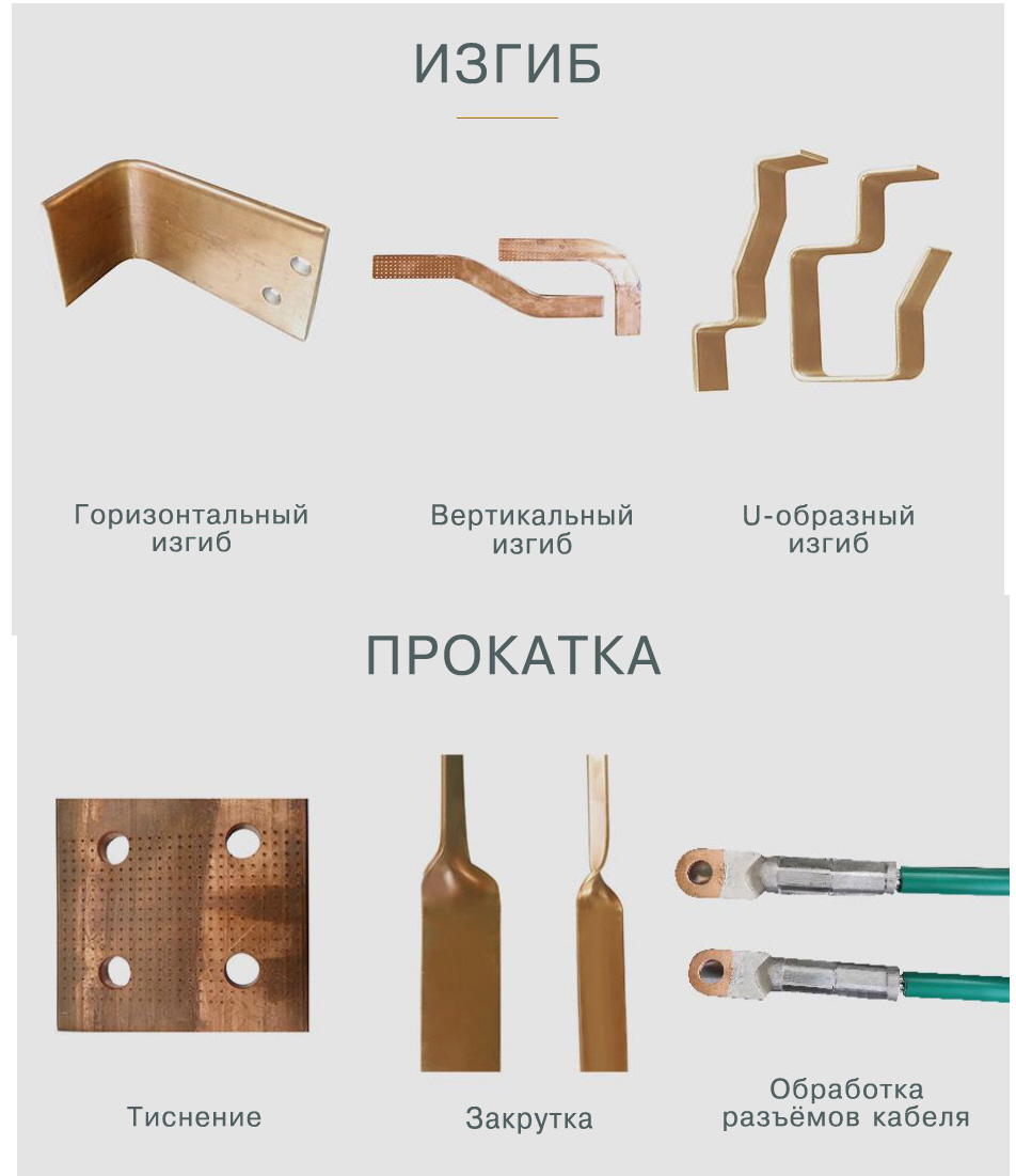 - Три модуля станка: шинорез гидравлический, шиногиб гидравлический и пресс гидравлический для перфорации электротехнической шины.