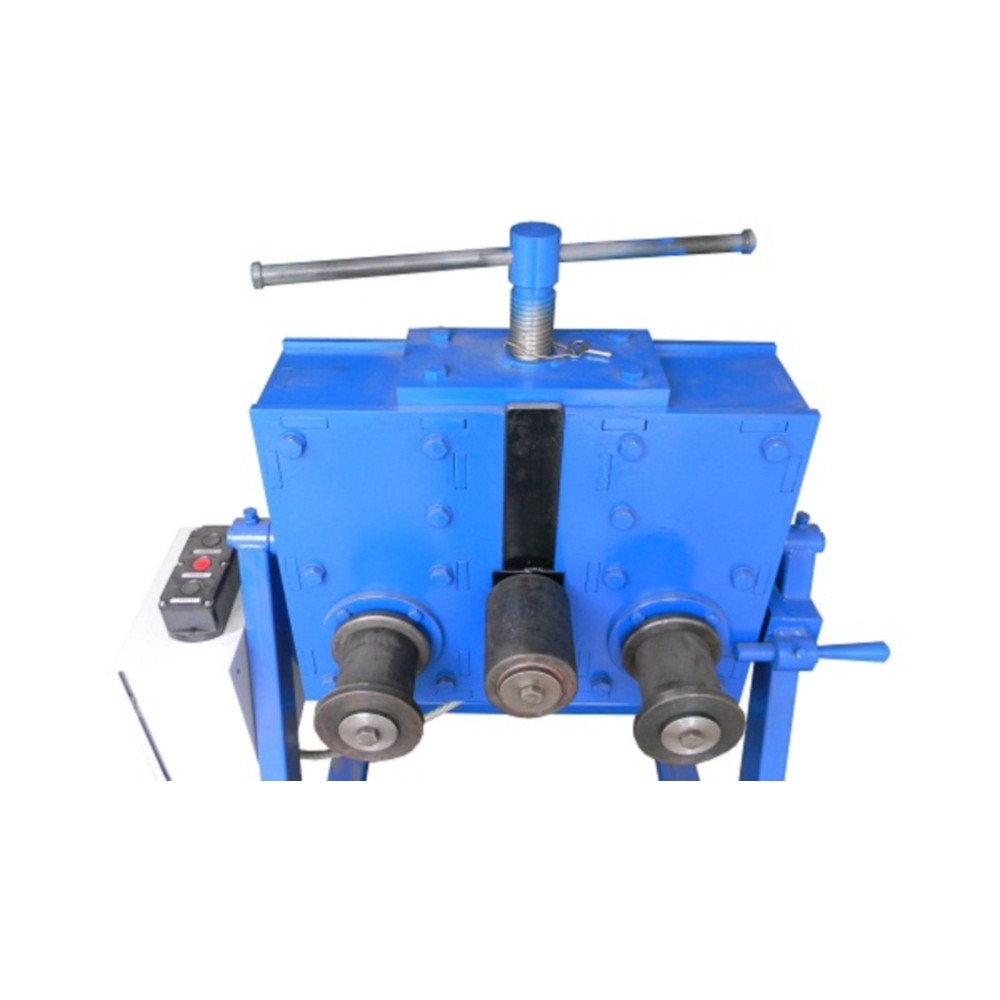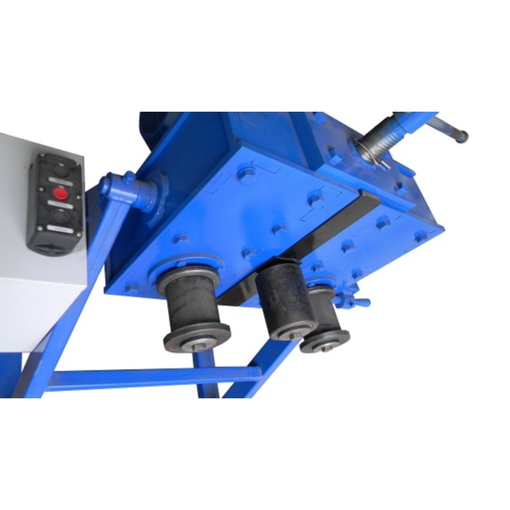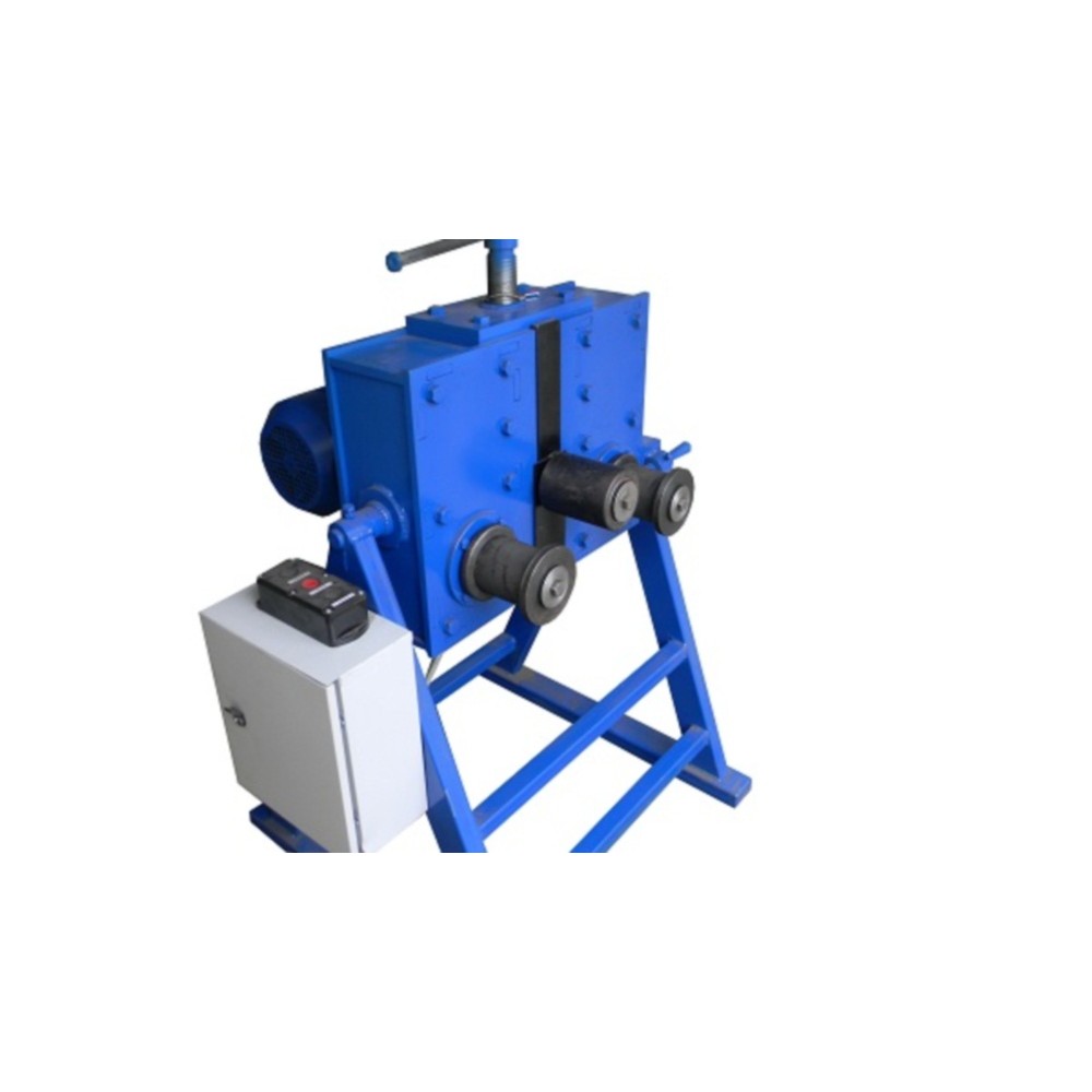 Станок используется для прокатки профильная трубы 80х40 и 100х50 стенка от 2 до 4 мм, полоса 100х8 мм, пруток до 25 мм, круглая труба до 76х3.5 мм, швеллер 100 мм, мин. радиус прокатки 300 мм.