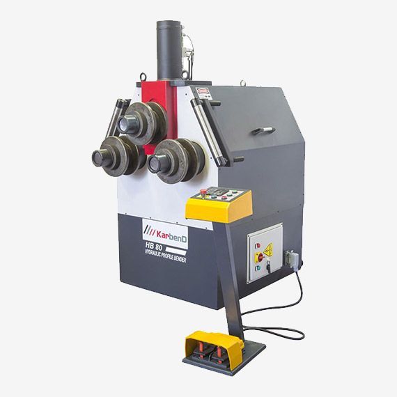 Гидравлический профилегиб KARBEND HB 80 с тремя приводными роликами предназначен для гибки профилей по определенному радиусу. Станок работает с любым профилем: круглая и квадратная труба, уголок, полоса, кругляк и квадрат, швеллер, тавр, двутавр. Для гибки некоторых профилей нужны специальные ролики.