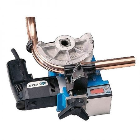 FLEX 22 – портативный электромеханический трубогибочный станок, незаменимый при монтаже трубопроводов. FLEX 22 V также оснащен цифровым дисплеем, указывающим угол гибки для достижения наибольшей точности. Способен производить детали с оптимальным и постоянным радиусом гибки без деформации трубы. В стандартную комплектацию входит пять форм для разных диаметров труб, бронзовый двусторонний упор для труб от ф10 мм до ф30 мм, чугунный односторонний упор для труб от ф24 мм до ф30 мм, а также универсальный роликовый упор для толстостенных труб (до 3 мм) и диаметром больше 22 мм.