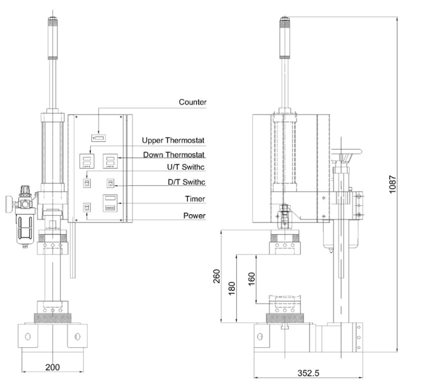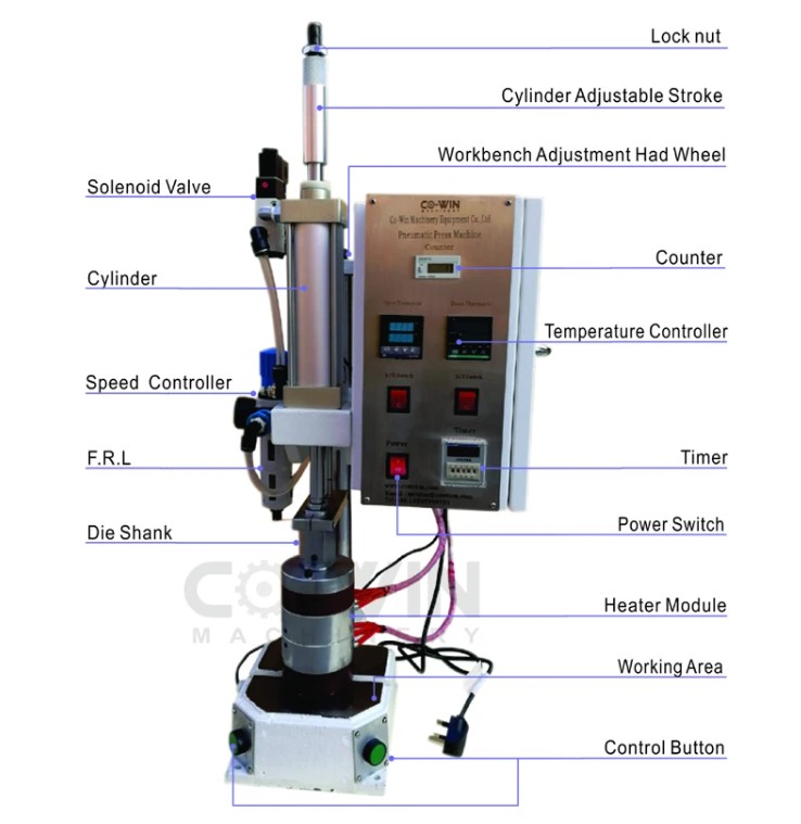 Пневматический пресс с нагревательной формой. Широко используется для прессования, литья, в сборке, штамповке, резке, деформации и т.д.