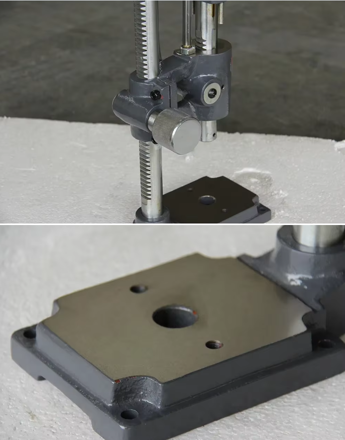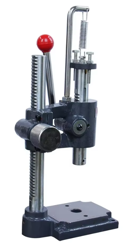 Этот ручной пресс предназначен для быстрого перемещения с регулируемой высотой. Мощность передается через шток коленчатого блока, который предназначен для быстрого обслуживания. Возвратная пружина на рукоятке рычага. В нижней части пиноли имеется отверстие с фиксирующим винтом для крепления инструмента. В основании имеется 4 монтажных отверстия, позволяющих закрепить этот пресс на верстаке. Регулировочный винт для предварительной настройки хода. Идеальный пресс для сборочных работ.