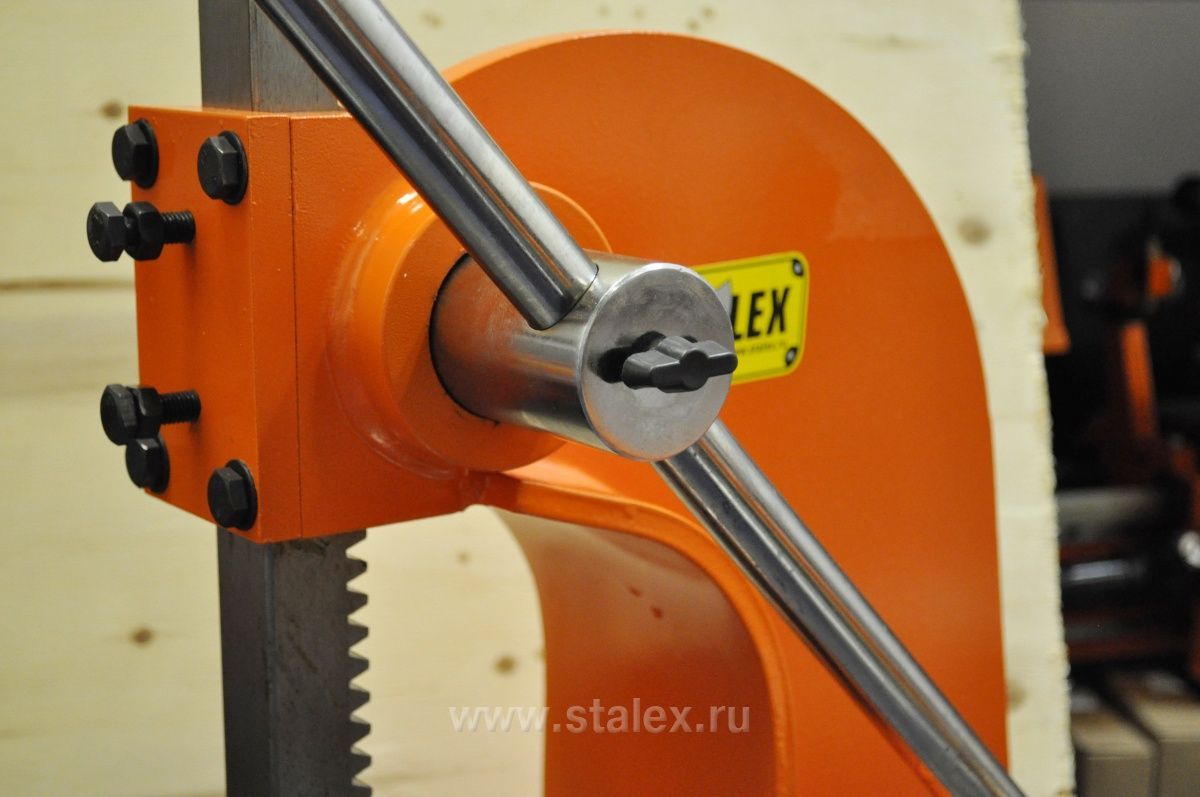 Используется в ремонтных и производственных целях. Благодаря высококачественным зубьям, пресс позволяет выпрессовывать подшипники, втулки и различные другие детали небольшой высоты. Усиленная Т-образная конструкция из плотного металла не деформируется в процессе работы. Усилие с рукоятки на шток передается с помощью зубчатой шестерни. Рычаг перемещается внутри оси вращения, увеличивая или уменьшая плечо. Это позволяет развивать усилие на выходе до 3 тонн