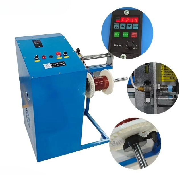 Машина изготовлена из квадратной стали, что обеспечивает ее прочность и долговечность. В комплект входит распределительный шкаф, состоящий из блока питания и частотного преобразователя. Возможна регулировка скорости вращения до 120 Н в минуту. Машина имеет четыре фиксированных компенсационных винтовых проушины внизу и противоскользящее устройство вверху, выдерживающее нагрузку до 30 кг. Прецизионные приводы роликовых колец гарантируют точность процесса намотки, что делает ее идеальным дополнением к любой производственной линии.