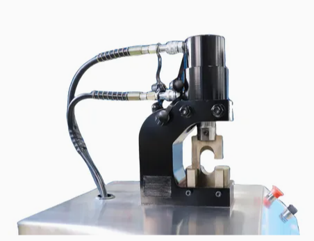 Настольный стальной канатный резак — это режущий инструмент, используемый для резки стальных канатов. Может использоваться в различных отраслях промышленности, таких как металлургия, нефтегазово-, химическая промышленность, горная промышленность, порты, доки, краны и строительство. Канатный резак из стальной проволоки состоит из режущего инструмента, электрического масляного насоса сверхвысокого давления и рабочего стола из нержавеющей стали. Режущий блок состоит из режущего блока, гидравлического цилиндра и верхнего и нижнего лезвий. Блок электрического масляного насоса состоит из однофазного асинхронного двигателя, электромагнитного клапана, масляного насоса высокого давления, масляного бака и ножного переключателя. Он разработан для простоты эксплуатации, высокой силы резания и удобства использования. Кроме того, в случае возникновения аварийных ситуаций он оснащен выключателем аварийного останова для немедленного отключения питания.