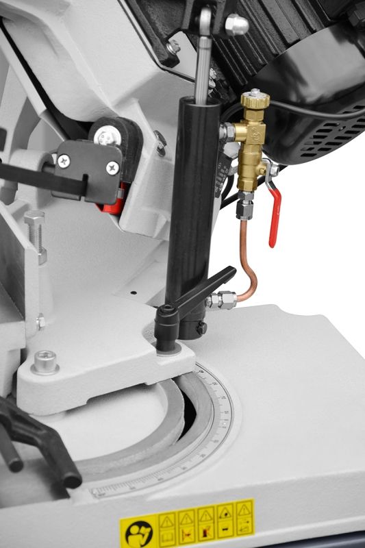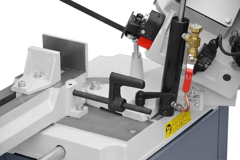 - Стабильность во время резки обеспечивают: стабильный рабочий стол из чугуна, тиски и рама, находящиеся на нём.