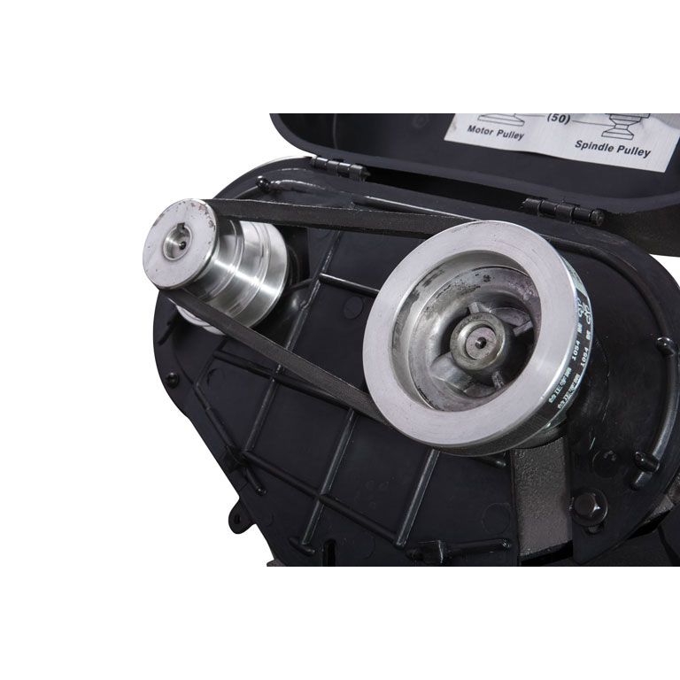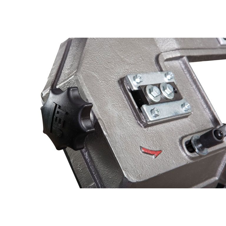 Модель HVBS-56М оснащена компактным электродвигателем мощностью 650 Вт. Станок имеет ременной привод, обеспечивающий движение ленточного полотна в 3-х скоростном режиме, 20,30 и 50 м/мин. Моторная группа имеет систему воздушного охлаждения. На раме установлены направляющие, регулирующие позиционирование полотна при пилении заготовок различного диаметра. Сокращение расстояния между направляющими уменьшает увод полотна, повышает качество распила. Необходимая точность распила достигается благодаря наличию в конструкции станка подшипников, установленных непосредственно в направляющих. Задача подшипников обеспечить постоянное перпендикулярное положение полотна по отношению к заготовке в процессе распила.