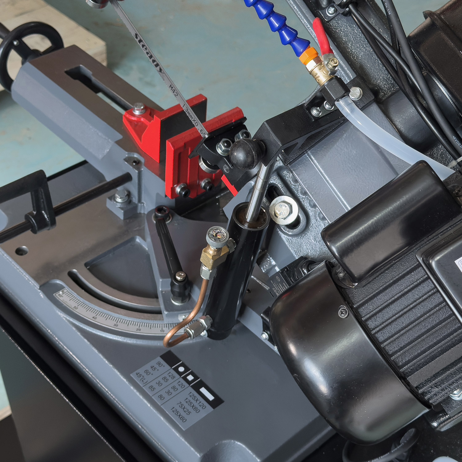 - Гидравлическая система зажима: Надежно фиксирует заготовки любого профиля для идеальной точности реза.