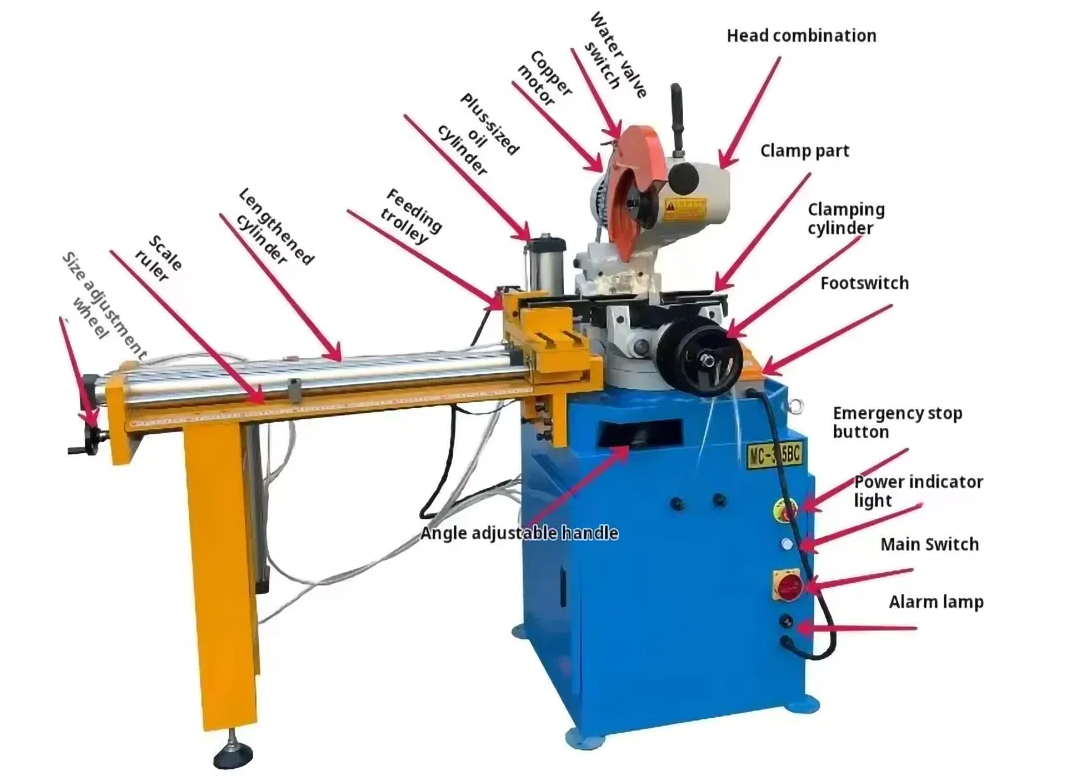 - Предусмотрены ручной двухсторонний зажим заготовки, автоматическая система охлаждения и регулируемый вручную стопор.