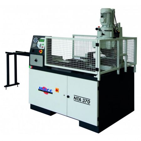 MACC NTA 370 - автоматический круглопильный станок с ЧПУ, который предназначен для резки профильных заготовок толщиной до 130 мм под углом от 0° до 45° (угол реза выставляется вручную); 9 программ настройки из 99 значений позволяют задавать все необходимые режимы (всего до 890) и контролировать процесс резки; Станок оснащен электрической помпой для автоматической подачи СОЖ и ее фильтрации; С помощью MACC NTA 370 получается качественный разрез без образования заусенцев и сгибания профиля; Максимальный ход подачи заготовки 600 мм.