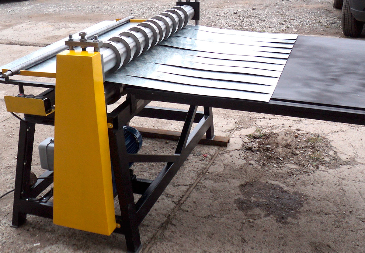Станок «СПР-10» представляет собой дисковые ножницы, оснащенные 10 парами стальных ножей марки ХВГ. Данное оборудование для резки металла может эксплуатироваться как при продольном, так и при поперечном нарезании листового и рулонного металлического материала.