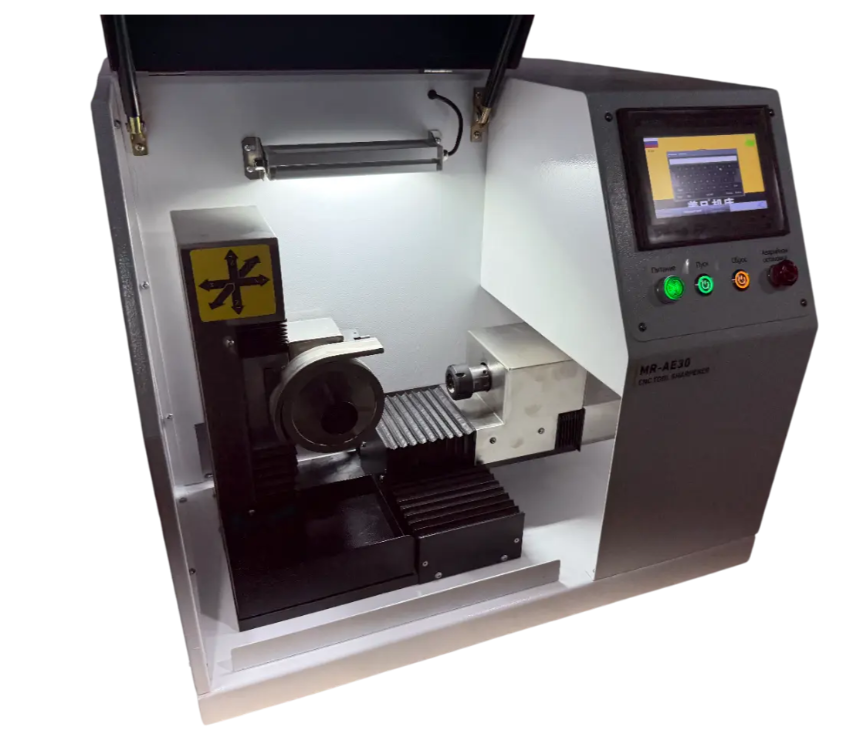 - Четыре управляемые оси позволяют легко, быстро и с высокой точностью затачивать фрезы и сверла различных типов.