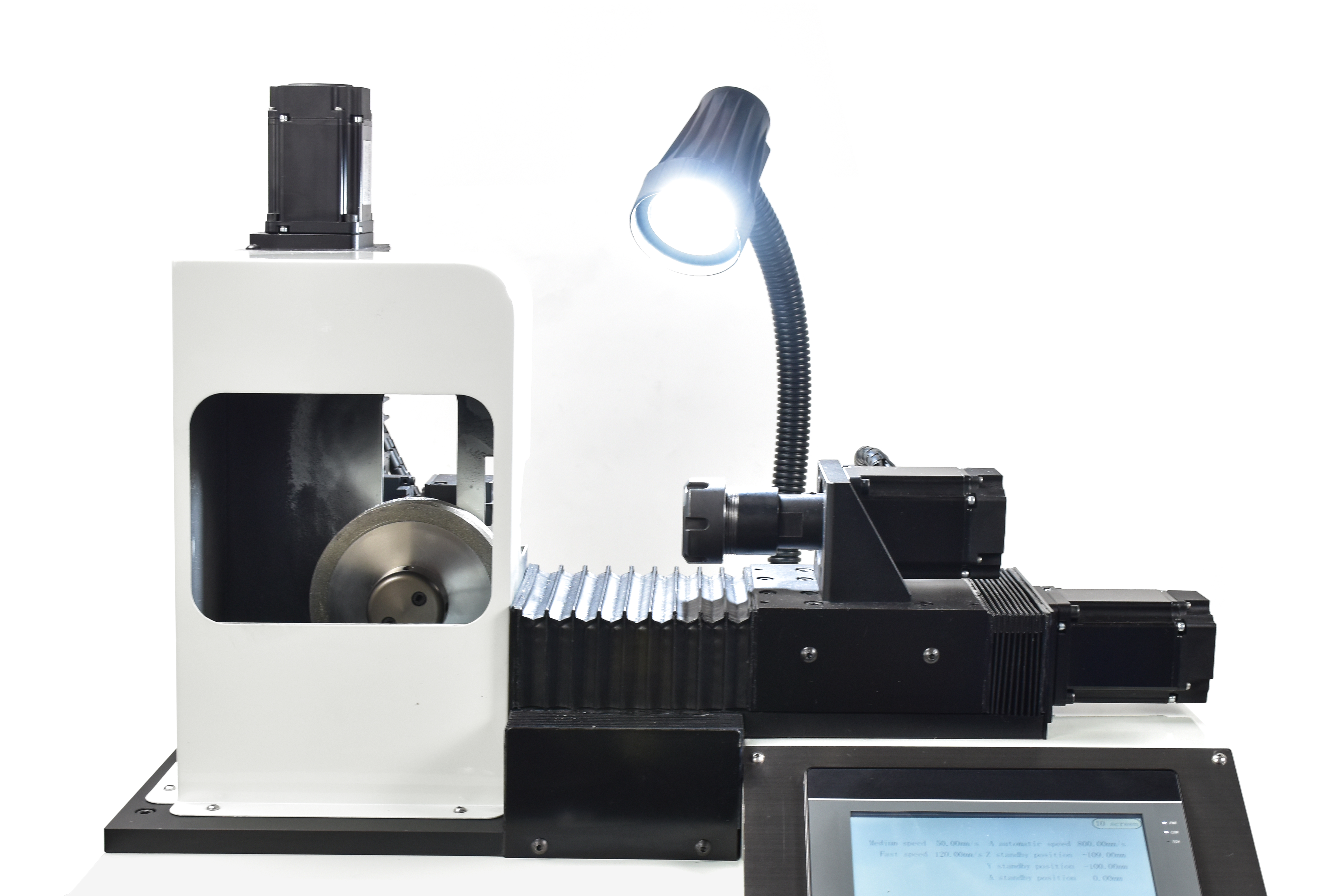 - Простая система управления ЧПУ с большим количеством предустановленных программ заточки значительно облегчают работу оператора — нужно только закрепить инструмент и выставить несколько параметров.