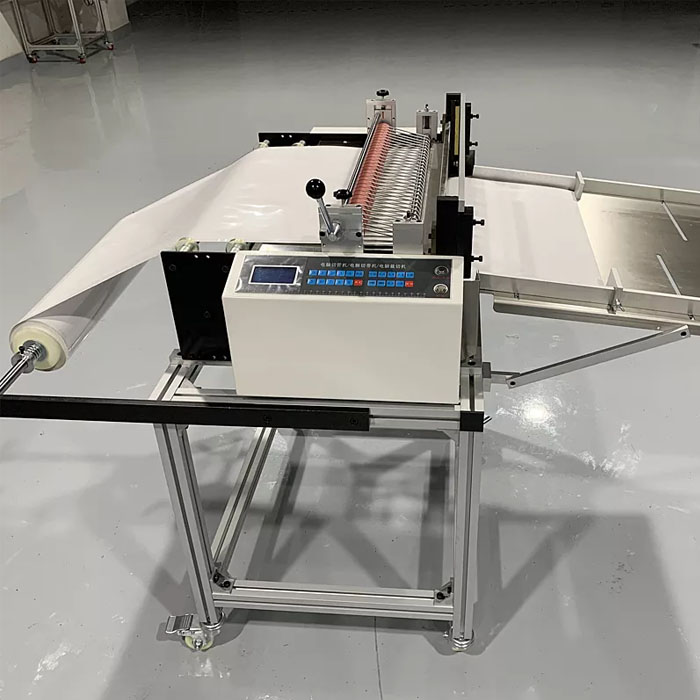 Станок для резки пленки HDK-600 простой в применении, не требует специальных навыков в работе, легко и быстро переустанавливается на новое рабочее место. Оператор станка управляет ходом процесса при помощи пульта, с которого заносятся данные в промышленный контроллер, длина и количество заготовок контролируются при помощи штатных фотодатчиков и счетчиков длины.